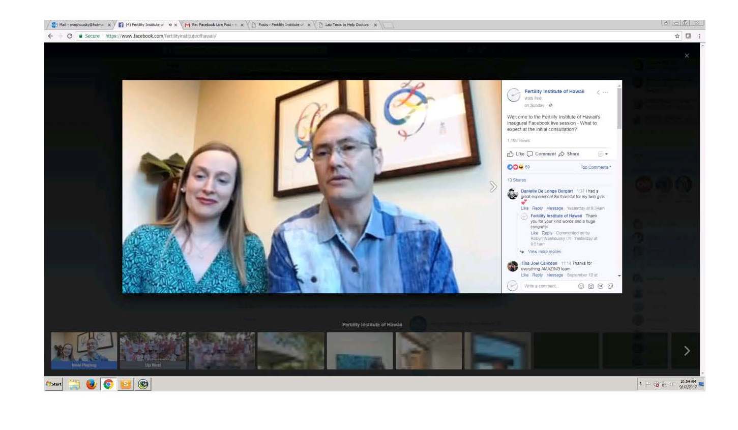 This is the first of many LIVE sessions that are planned in the future. If you visit our Facebook page at https://www.facebook.com/fertilityinstituteofhawaii/, you can view the session again and the associated comments. If you have a question that was not answered, please do not hesitate to contact us at [email protected], and we will be happy to answer it for you.