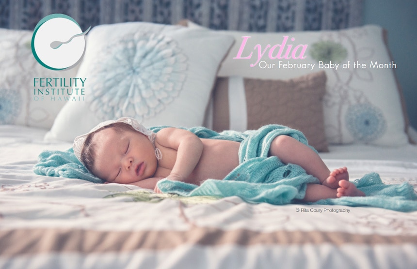 When mom Katie met her spouse, he informed her that he could not father children, due to a genetic defect causing male factor infertility. The couple married and life carried on, all the while believing that having children to complete their family was an impossibility. However, the desire to become parents always remained strong. An internet search led the couple to the Fertility Institute of Hawaii and the specialized technique of IVF with ICSI. The couple’s first embryo transfer was a success and on February 11, 2016, beautiful baby Lydia Frances was born.
